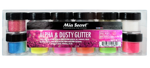 El Set Alpha & Dusty Glitter de Polvos acr?licos?Mia Secret,?contiene 12 botecitos de puro glitter de diversos? colores fantas?as de 7 gr?que? proporcionan una consistencia ideal con un tiempo de activaci?n menor, adhesi?n superior y son de larga duraci?n con diversas ,por su consistencia, es ideal para hacer relieves y dise?os 3D. Tiene una f?rmula autonivelante y no amarillenta la base natural de la u?a.? Puedes mezclarlos con cualquier sistemas acr?lico, formagel, gel nail art y gelux